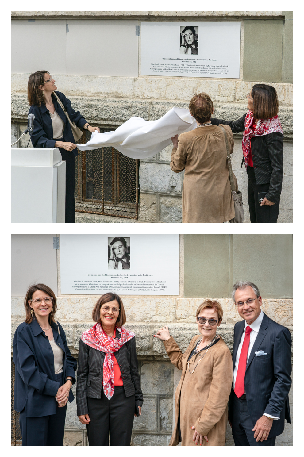 La plaque commémorative en hommage à Alice Rivaz a été dévoilée le lundi 19 mai 2025 au Collège pour adultes Alice-Rivaz à 17 heures, en présence de Madame la Conseillère d'État Anne Hiltpold, Madame la Conseillère d'État honoraire Martine Brunschwig Graf, Madame Marianne Dyens, Présidente de l'Association Alice Rivaz, Monsieur Christophe Hauser, Directeur du Collège pour adultes Alice-Rivaz.